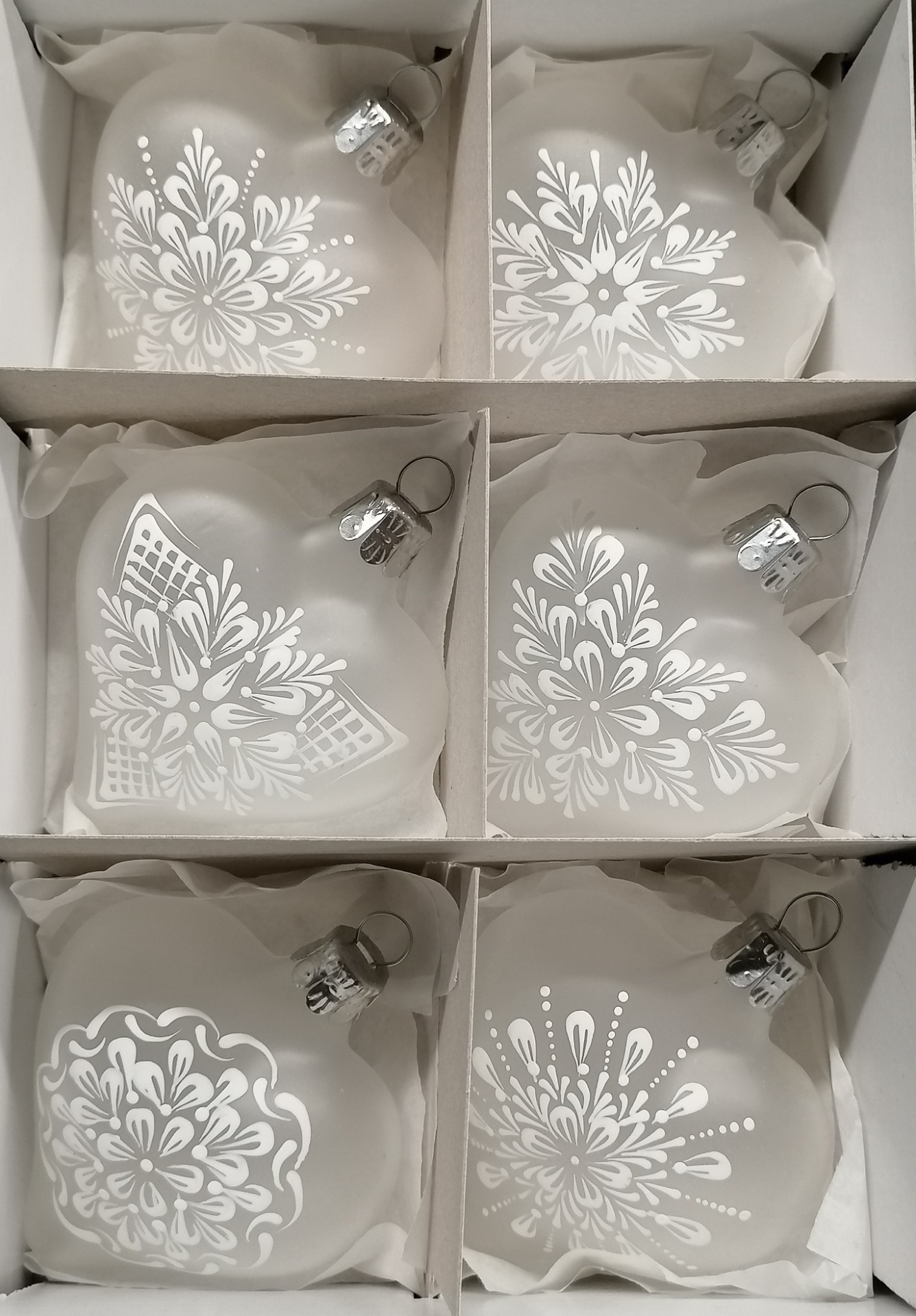 Skleněné vánoční ozdoby ručně malované akrylem.